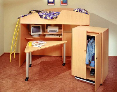 Шкафы, кровати, блоки, столы и столешницы, тумбы мобильные и стационарные являются взаимозаменяемыми элементами в сериях Юна и Турбо.